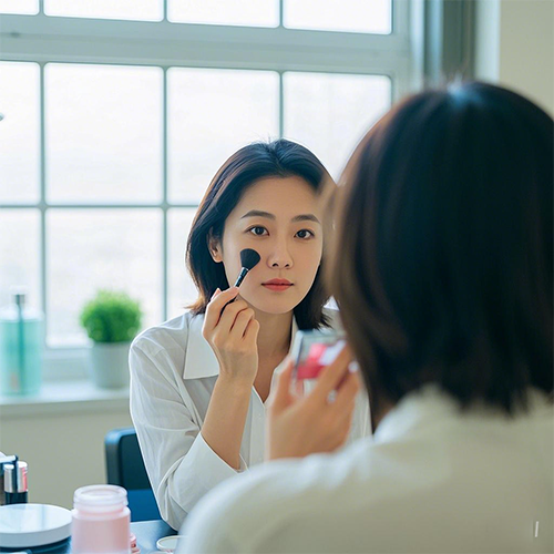 干燥的肌膚即使涂上好幾層粉底,還是無法修飾肌膚細紋。沈陽化妝學校建議補妝前,先使用保濕噴霧或眼霜,給予肌膚濕潤度,接著噴些保濕霧于粉撲上后再沾取粉餅,此法能讓粉底與肌膚更加服貼融合,還能避免越補粉越厚的困擾。使用這個技巧,不管是干燥肌膚還是皺紋,都可以粉底擦得很自然,妝也會畫得很漂亮。