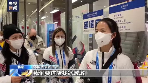 韓國代表團(tuán)成員:我們要進(jìn)店找“冰墩墩”,還有冬奧特許配飾等?!氨斩铡碧蓯哿?。