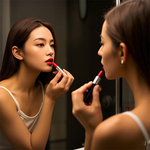 涂口紅我們可以適當?shù)剡\用棉簽來暈染,過渡一下我們的唇線,讓唇線的邊界模糊一點,這種化妝效果會在無形當中讓我們的唇線內(nèi)收一點,讓嘴唇看起來更加的飽滿立體。