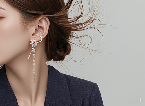 短發(fā)可佩帶卵形或菱形的耳環(huán),以及精巧的耳釘來襯托出活潑、精明、干練;嫵媚卷發(fā),波浪精致嫵媚,大偏分復(fù)古,選戴充滿女人味的耳環(huán),與卷發(fā)一起揮動魅力無窮;盤發(fā)可以很好的展現(xiàn)女士的高貴氣質(zhì),把頭發(fā)盤起來后,露出的耳朵就成了焦點(diǎn),戴白色或有顏色的大型耳環(huán),或吊墜式耳環(huán),看上去典雅又大方;把頭發(fā)蓬松扎起,搭配一對不對稱的耳環(huán),個性十足。