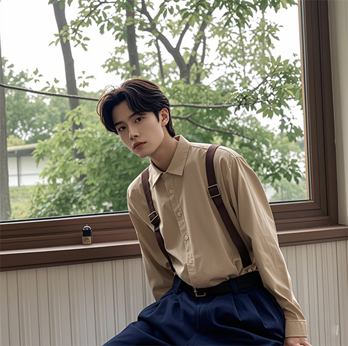 沈陽(yáng)化妝學(xué)校的老師說(shuō)過(guò)這種風(fēng)格的背帶褲就是在營(yíng)造一種復(fù)古的情懷和氣質(zhì),上身搭配的是杏色的翻領(lǐng)襯衣,下身搭配的是這種藏藍(lán)色的復(fù)古氣質(zhì)背帶褲,特別溫文儒雅的一套搭配,會(huì)讓男生的氣質(zhì)變得非常的沉靜和文藝。