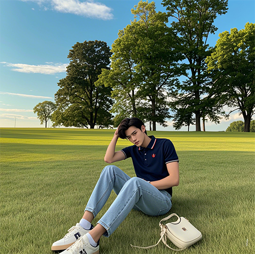 1、Polo衫+牛仔褲