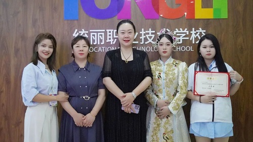 本次蒞臨比賽現(xiàn)場的領(lǐng)導有:統(tǒng)麗學校郭校長、副校長姚娟、化妝系主任兼高彩一班班主任高元元老師、國際化妝班春杰老師、高彩二班瑤瑤老師、私人訂制班小帆老師、私人訂制班花花老師、紋繡班菲菲老師、校長助理苗巧巧。