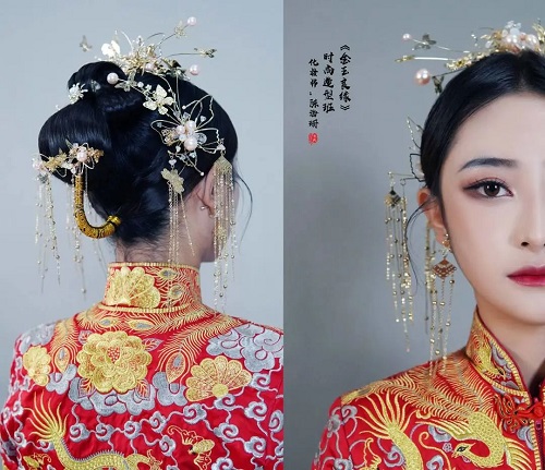 秀禾新娘妝也是古典新娘妝的一種,統(tǒng)麗沈陽化妝學校告訴大家秀禾主要的特點是新娘在婚禮儀式上穿著秀禾服所做的婚禮造型,體現(xiàn)中華女子秀美、端莊的感覺。