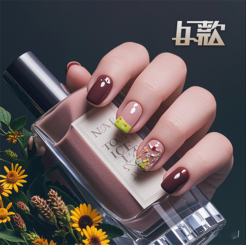 除了玩顏色,還能玩材質(zhì),什么羊毛材質(zhì),皮革材質(zhì)都能玩。搭配不同的材質(zhì)能讓指甲造型更活潑有