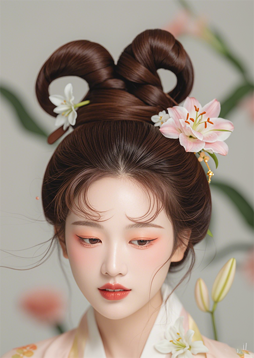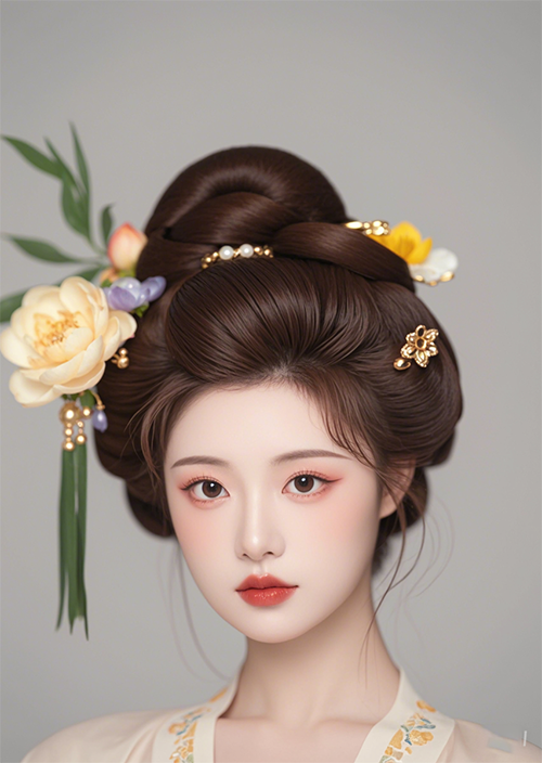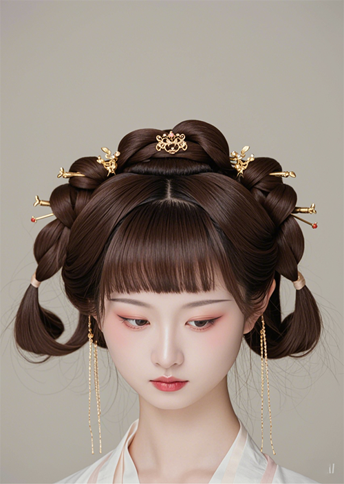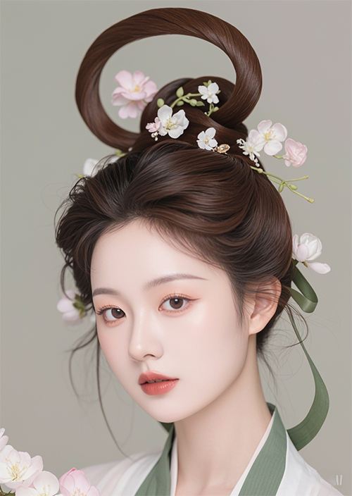 這種發(fā)型靈活生動又饒有風(fēng)韻,為神女與未出室的名貴女流所好用。在古代仕女畫中尤為多見。造型時可靈活運(yùn)用。