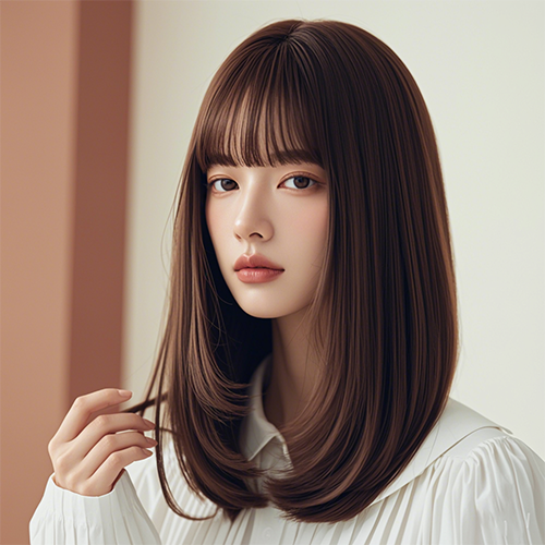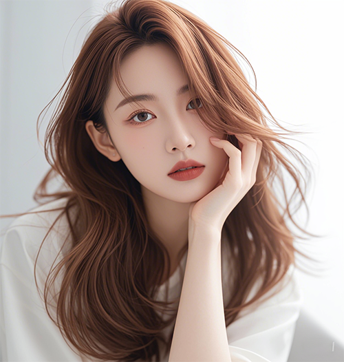 尤其是中分的長發(fā),長度在下巴之上,可以強(qiáng)調(diào)下顎的弧度,使臉看上去更長更小。