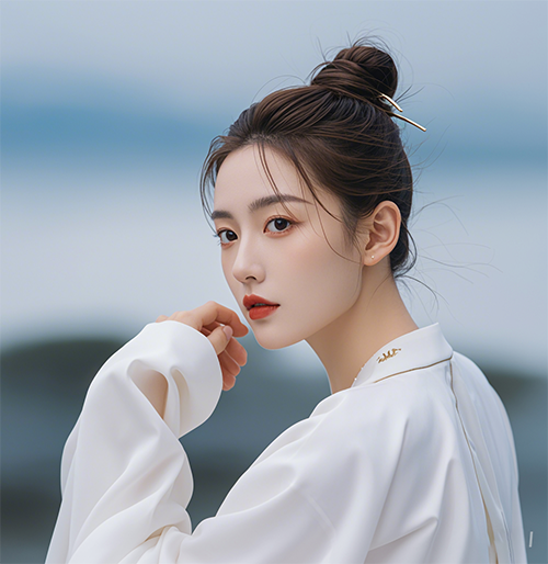 這樣的偏分,可以柔化臉部線條,并且因?yàn)槠洳粚ΨQ性使得臉部看上去不那么圓了。