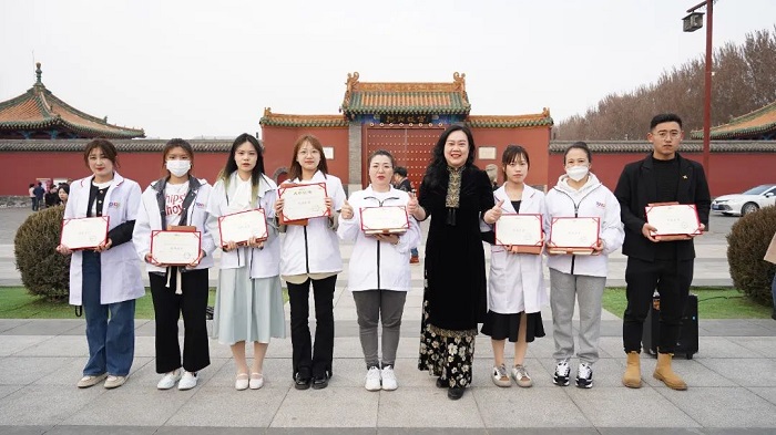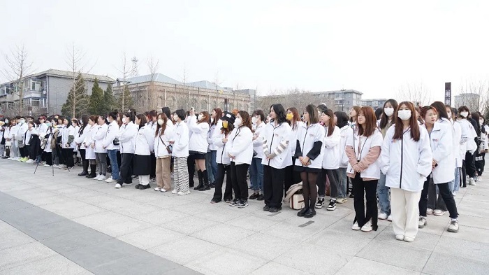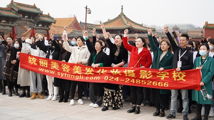 化妝系的同學(xué)們比較多,看了打樣的美容系同學(xué)也不甘示弱,在老師的引導(dǎo)下也把口號(hào)喊出了氣勢(shì):