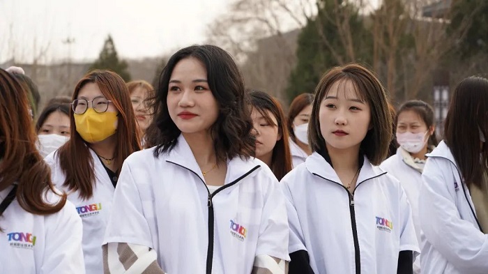 美容班的同學(xué)首當(dāng)其沖,全系整齊劃一喊出了系口號(hào):激情澎湃、統(tǒng)麗不敗、斗志昂揚(yáng)、美容最強(qiáng)!