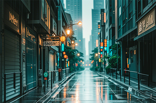 雨后路面會形成水灘,宛如一面鏡子把城市倒映出來,此時仿佛另一個神秘的世界,拍下這個場景,照片非常有趣味。
