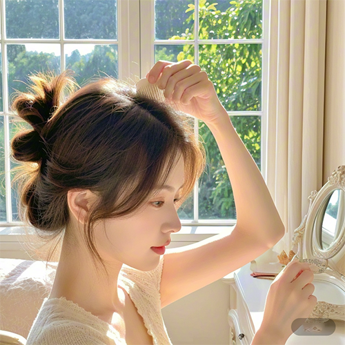 6.用噴了發(fā)膠的發(fā)梳整理卷發(fā),能更有效地定型。