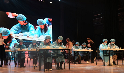 進(jìn)入大賽正賽!首先是團(tuán)隊展示環(huán)節(jié),化妝系率先登場獻(xiàn)上《國.家》,整齊的隊列、精心編排的動作、嘹亮的口號,飽含深情的歌聲,抒發(fā)著這群年輕人的家國情懷,以及對黨和國家的感恩、贊美之情;美容系學(xué)員則帶來了詩朗誦《我驕傲,我是統(tǒng)麗人》,深情地表達(dá)了她們對夢想的不懈追求、對身為統(tǒng)麗人的驕傲和自豪、對美好未來的無限期冀。