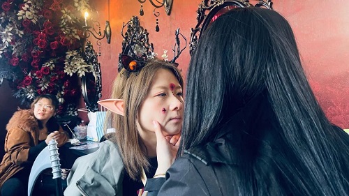 她們精湛的化妝技巧,將平凡的面龐變成了猙獰可怖的怪物,生動(dòng)地展現(xiàn)了萬(wàn)圣節(jié)的恐怖氛圍。她們通過(guò)精細(xì)的線條勾勒和逼真的妝容,他們讓參觀的游客們無(wú)不驚嘆不已。無(wú)論是猙獰可怖的面部妝容,還是絢麗多彩的特殊效果妝容,都讓人們仿佛置身于奇幻世界中。