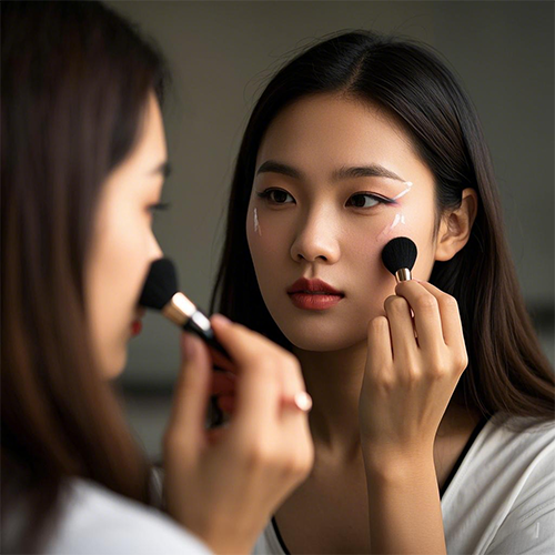 1、清潔面部肌膚并護(hù)膚,然后使用隔離和粉底液進(jìn)行臉部妝容打底。