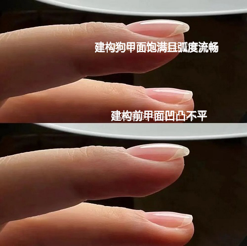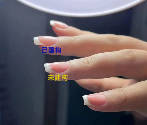 (加固只是涂一遍有硬度的加固膠,沒有調(diào)整指甲的飽滿度和形狀,建構(gòu)在調(diào)整的同時(shí)就已經(jīng)加固了)