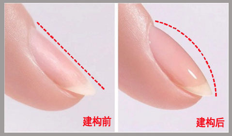 (建構(gòu)是讓指甲飽滿有一定弧度。塑形嚴(yán)格來說是需要用有一定硬度的產(chǎn)品配合塑形夾特殊的擠壓操作調(diào)整出C弧才能稱為塑形)