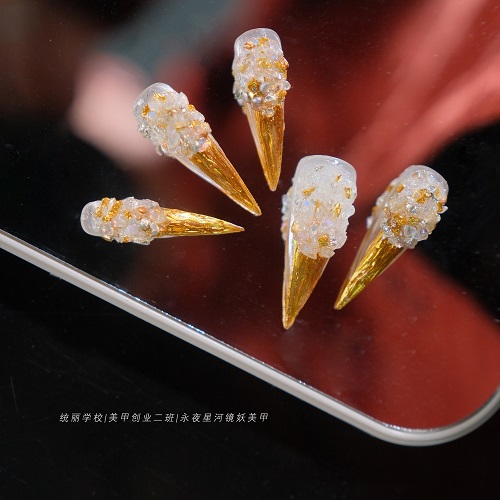 金色的光輝象征著無盡的財富與希望,而碎鉆則如同追夢路上的點點星光,引領(lǐng)著每一個愛美之人向著美好前行。它不僅是一種指尖的藝術(shù),更是對生活品質(zhì)的一種追求和表達。