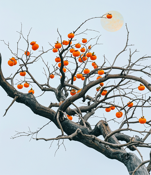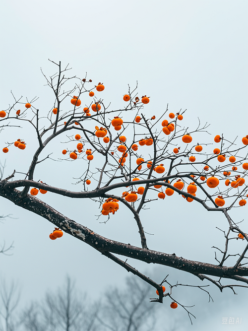 構(gòu)圖上,可以借鑒水墨畫的留白技巧,不必將整個(gè)柿子樹都納入鏡頭,而是選取其最具特色的部分,如枝頭掛滿果實(shí)的景象,或是葉片與果實(shí)交織的細(xì)膩紋理。通過精心布局,讓畫面既有視覺焦點(diǎn),又不失空靈之感。