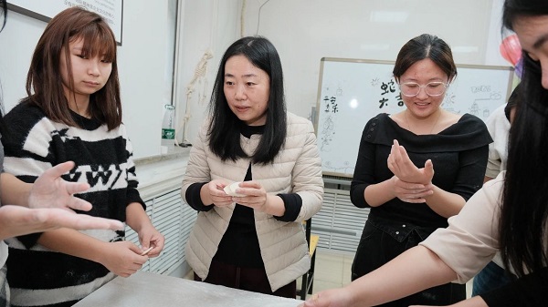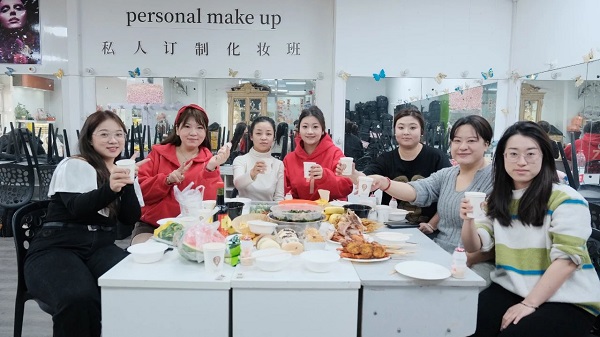 不光是教室布置,就連互動游戲環(huán)節(jié)同樣熱火朝天,將歡樂的氛圍推向了新的高潮。猜謎語游戲更是充滿了趣味與驚喜。彩色的紙條上寫滿了各式各樣的謎語,懸掛在校園的長廊下,隨風飄動,吸引著師生們駐足思考。有詼諧幽默的字謎,讓人絞盡腦汁;有妙趣橫生的生活謎語,引得大家腦洞大開;還有與專業(yè)相關的美妝謎語,讓同學們在熟悉領域大顯身手。大家或是獨自沉思,或是三兩成群熱烈討論,每當謎底揭曉,歡呼聲與恍然大悟的笑聲便回蕩在校園上空。師生齊心,一起包餃子