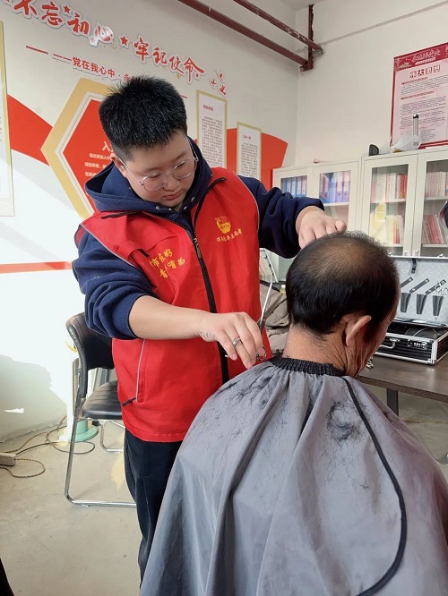 在理發(fā)過程中,志愿者們將全神貫注,遇到頭發(fā)較硬或打結(jié)的情況,志愿者們也不急躁,而是小心翼翼地處理,避免弄疼老人。他們還會不時與老人交流,詢問老人的感受,根據(jù)老人的需求及時調(diào)整發(fā)型。