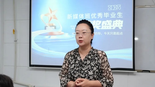 隨著九萬(wàn)老師熱情洋溢的開場(chǎng),現(xiàn)場(chǎng)迅速被點(diǎn)燃。九萬(wàn)老師依次介紹了出席本次典禮的嘉賓,其中郭校長(zhǎng)的到來(lái)更是讓現(xiàn)場(chǎng)掌聲雷動(dòng)。郭校長(zhǎng)一直以來(lái)對(duì)新媒體班的發(fā)展關(guān)懷備至,此次典禮的舉辦,她也給予了高度重視。