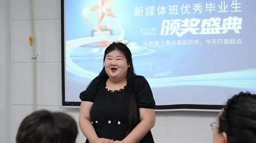之后,優(yōu)秀學(xué)生代表王月走上發(fā)言席。她以自己的親身經(jīng)歷為切入點(diǎn),分享了在新媒體班學(xué)習(xí)生活的酸甜苦辣。從初入班級(jí)時(shí)對(duì)新媒體的懵懂,到在老師的悉心指導(dǎo)下逐漸掌握各種專業(yè)技能。王小月的真誠(chéng)分享,讓大家看到了她的努力與堅(jiān)持,展現(xiàn)了新媒體班學(xué)員們不畏困難、積極進(jìn)取的精神風(fēng)貌。她的發(fā)言不僅引起了同學(xué)們的強(qiáng)烈共鳴,更激勵(lì)著在場(chǎng)的每一位同學(xué)勇敢追逐夢(mèng)想。