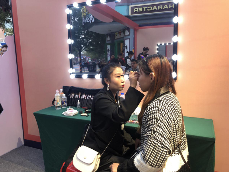 在李老師的統(tǒng)籌和指導下,國際化妝班學員克服種種困難,出色地展現(xiàn)出了化妝、特效造型、發(fā)式、服裝、配飾等方面的精湛技藝,給數(shù)百名游客提供精美妝面,贏得主辦方和男女老少的高度評價和熱烈歡迎,成為活動中最為靚麗的一抹色彩!