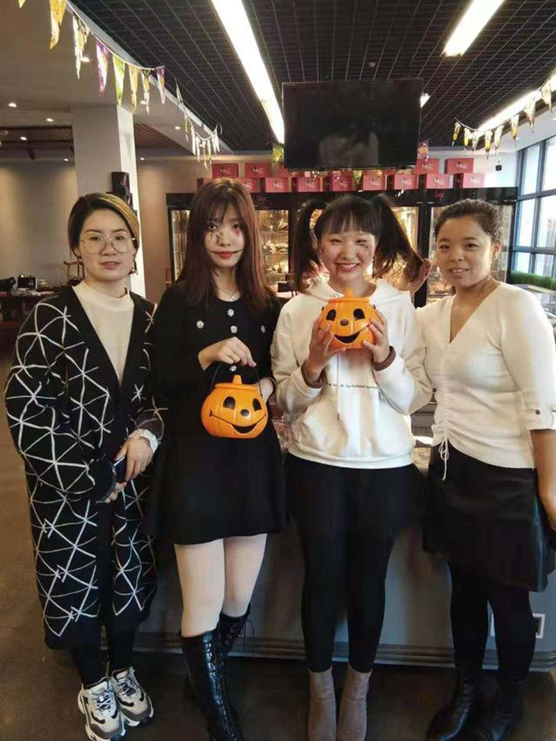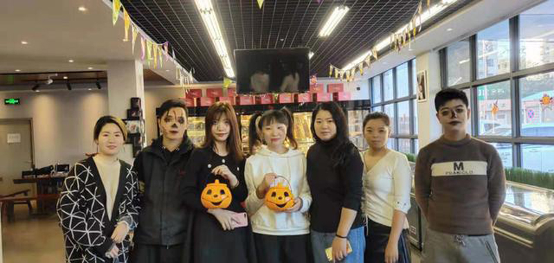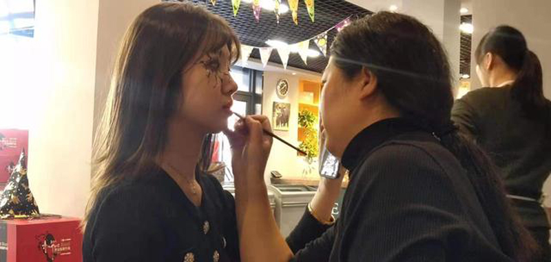 助妝對(duì)象是“老熟人”,參與派對(duì)的人數(shù)也不似商業(yè)活動(dòng)那樣多,因此這一次的助妝活動(dòng)壓力并不算大。即便如此,私人訂制班師生依舊沒(méi)有絲毫松懈,用精湛的化妝技術(shù)、飽滿(mǎn)的熱情和服務(wù)態(tài)度,為此次萬(wàn)圣街派對(duì)打造出了一個(gè)個(gè)逼真可怖的“鬼面”,讓派對(duì)高溫不下,讓參加派對(duì)的麗德?tīng)栴I(lǐng)導(dǎo)和員工在神秘詭異的氣氛下集體“鬼混”。