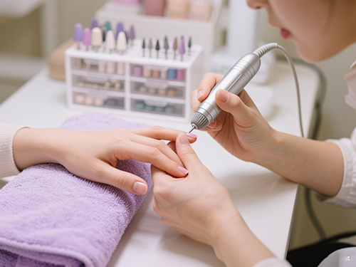 清死皮:鋼推清理甲面雜質(zhì)后,用死皮叉小心去除周邊死皮,操作需謹慎,為后續(xù)步驟打基礎(chǔ)。