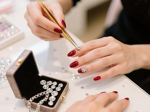 飾品鑲嵌:用水鉆、珍珠等,膠水適量粘貼,增添華麗感。