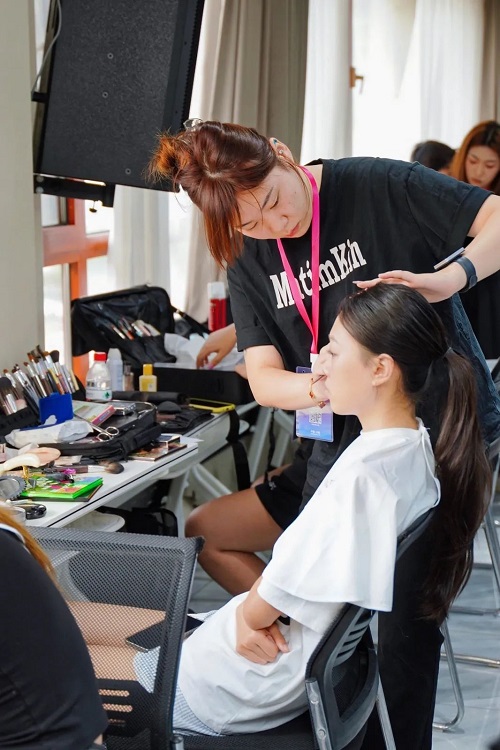 在這場備受矚目的時尚盛事中,她們沒有絲毫怯場。面對緊張的秀場節(jié)奏、多元的妝容需求,她們憑借在統(tǒng)麗學到的扎實技能,從容不迫地在模特臉上勾勒出精致妝容。每一筆色彩的暈染,每一處細節(jié)的修飾,都凝聚著平日課堂上的汗水與積累,更展現(xiàn)出超越同齡人的專業(yè)素養(yǎng)。