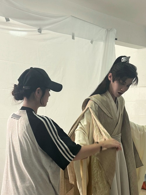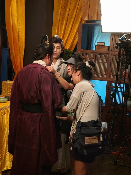 鏡頭前的細節(jié)把控同樣關鍵,調(diào)整演員的鬢角就是其中之一??此坪唵蔚囊粋€動作,卻需要足夠的耐心和技巧。學員們需要根據(jù)演員的臉型、發(fā)型以及鏡頭的角度,將鬢角的發(fā)絲梳理得自然又服帖,既不能過于凌亂影響美感,又不能過于僵硬顯得不真實。一開始,學員們常常需要反復調(diào)整才能達到滿意的效果,而隨著實踐次數(shù)的增多,他們漸漸能憑借直覺和經(jīng)驗,快速地完成這項工作,在鏡頭前從容地為演員調(diào)整好鬢角,展現(xiàn)出專業(yè)的素養(yǎng)。
