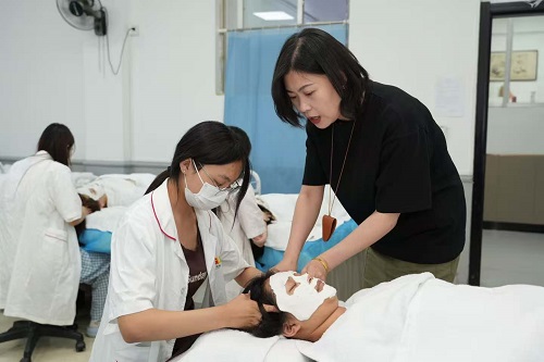 其次要分清“實操為王” 還是 “理論堆砌”。美容是手藝活,光靠課本記知識點遠(yuǎn)遠(yuǎn)不夠。有些學(xué)校天天讓學(xué)生背理論、畫示意圖,實際上手操作的時間少得可憐,畢業(yè)時連簡單的面部按摩手法都不熟練。這一點要注意的是不要只聽學(xué)校怎么說,還要看學(xué)校是否配有實操室,和相關(guān)設(shè)施。真正靠譜的學(xué)校,會把實操課占比提到60% 以上,從模擬假人練習(xí)到真人模特實操,還有老師一對一糾正手法,比如穴位按壓的力度、儀器使用的角度,都要反復(fù)打磨,這樣畢業(yè)才能快速適應(yīng)工作。