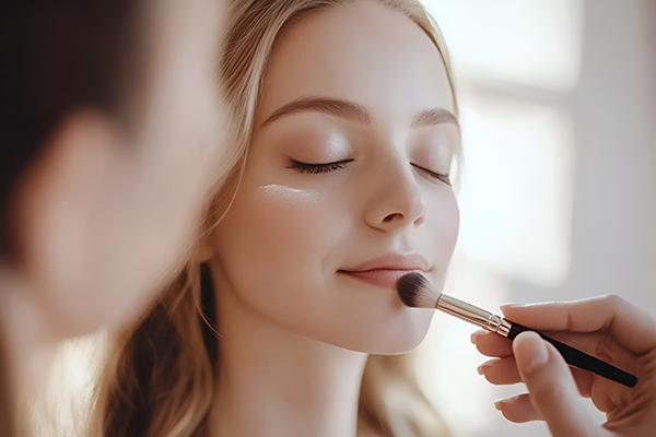 4. **定妝**:用散粉或定妝噴霧輕掃全臉,尤其是T區(qū)易出油部位,防止脫妝。干皮可以局部定妝,避免卡粉。