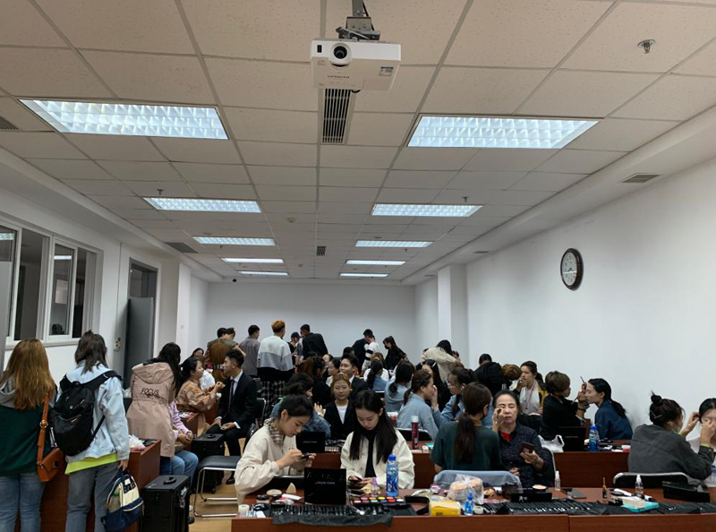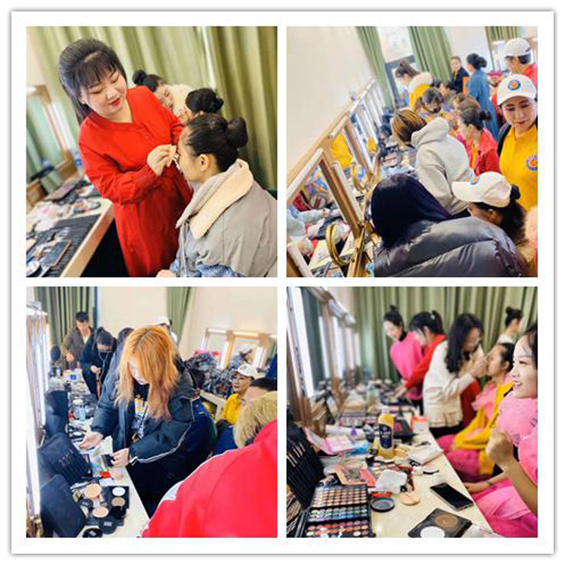 省市相關領導出席了活動,更有眾多知名演藝明星、主持人參演,作為遼沈乃至東北地區(qū)規(guī)模最大,最有社會影響力和號召力的職業(yè)技能培訓機構之一,統(tǒng)麗學校自然也不會缺席如此盛典。在李春杰老師的帶領下,國際化妝班早早啟程趕往遼寧大劇院,在后臺有條不紊地為數(shù)百位演出人員、主持人、消防指戰(zhàn)員提供了化妝、造型、發(fā)式、服裝、配飾等方面的美業(yè)技術支持。