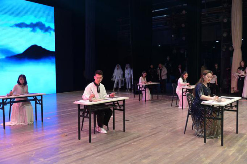 國家高級(jí)紋繡導(dǎo)師、國際化妝班講師王東芳老師隨后登場(chǎng),展示了時(shí)尚、大氣、自然的線條眉技法,以此為紋繡系的競(jìng)賽拉開序幕。國際紋繡班和紋繡精修班學(xué)員則在評(píng)委們的注目下,進(jìn)行了線條眉和霧眉的紋繡技藝比賽,出色地展示了純熟的專業(yè)技術(shù)和極高的審美品位。最后進(jìn)行的是攝影系作品競(jìng)賽,現(xiàn)場(chǎng)大屏幕上展示著小攝影師們辛苦拍攝的照片和視頻作品,一幅幅照片,一幀幀影像,無不體現(xiàn)著他們精湛的攝影技藝,以及他們對(duì)世界、對(duì)人生的思考。