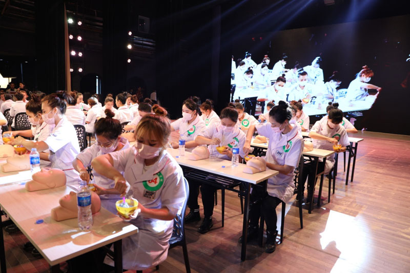 正當(dāng)所有人沉醉于盛放的浪漫中時(shí),美容系競(jìng)賽迫不及待地打響了!首先進(jìn)行的是皮膚管理班的面膜護(hù)理比賽,在評(píng)分老師的審視下,參賽學(xué)員從容不迫地在短短六分鐘時(shí)間里展示出精湛的技藝,此時(shí)此刻,她們不是在敷面膜,而是在用雙手書寫分離前行的麗質(zhì)人生!亞健康調(diào)理師班學(xué)員則進(jìn)行了手臂刮痧競(jìng)賽,展現(xiàn)了熟練的刮痧手法以及對(duì)中醫(yī)經(jīng)絡(luò)知識(shí)的深刻理解。