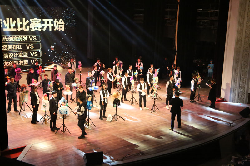 隨后進(jìn)行的是美發(fā)系競(jìng)賽環(huán)節(jié)。美發(fā)精剪班和美發(fā)燙染班率先登場(chǎng),分別進(jìn)行了剪發(fā)和排杠技藝的展示和競(jìng)賽;美發(fā)系主任陳剛老師則在教師風(fēng)采展示環(huán)節(jié)中,演繹了令人拍案叫絕的晚裝盤發(fā)技巧,盡展美發(fā)大師的風(fēng)范;美發(fā)弟子班和美發(fā)大師班學(xué)員則先后進(jìn)行了沙龍商業(yè)發(fā)型和晚裝盤發(fā)技巧的展示和競(jìng)賽。精湛的技藝、炫酷的設(shè)計(jì),統(tǒng)麗的美發(fā)人向所有人展示了自己淋漓展現(xiàn)頂上功夫、完美演繹頸華實(shí)業(yè)的決心和信心。