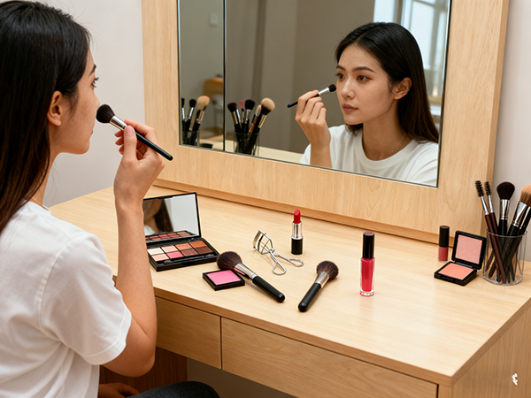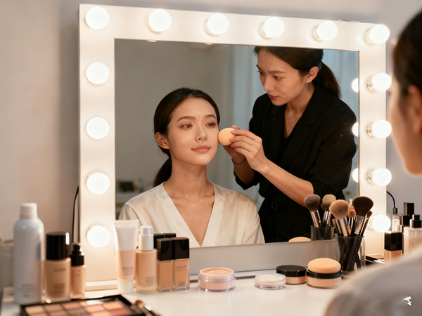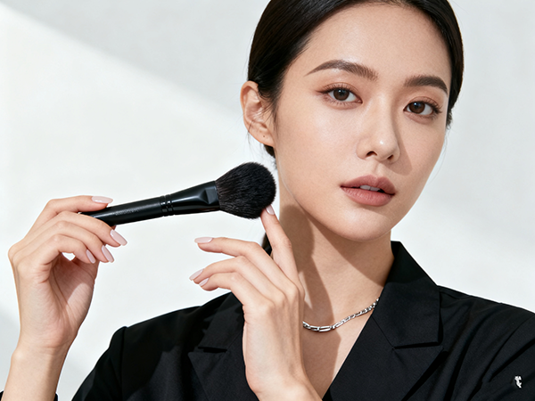 關(guān)鍵技巧:用美妝蛋按壓上妝更服帖,遮瑕遵循 “少量多次” 原則,T 區(qū)定妝可加重,臉頰輕掃即可。