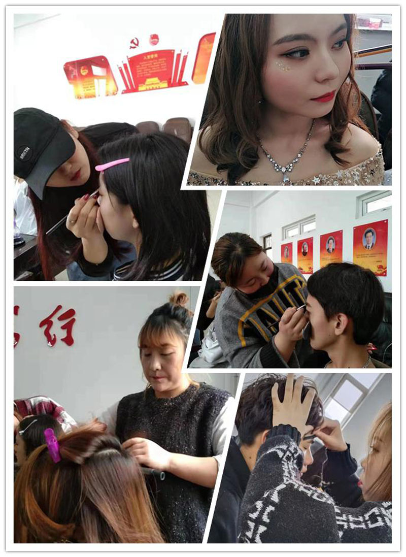 李小美老師主動接下了這一助妝硬仗,11月22日,在李老師的安排和帶領(lǐng)下,時(shí)尚造型班不辭路遙、不畏嚴(yán)寒,經(jīng)過近兩個(gè)小時(shí)的舟車勞頓,一大早便抵達(dá)工業(yè)大學(xué),與活動組委會妥善對接后,展開了忙碌的助妝任務(wù)。由于是綜合性晚會,演出內(nèi)容涵蓋合唱、韓舞、綜藝、詩朗誦、舞臺劇等眾多題材,此次助妝對妝面的質(zhì)量和類別要求極高,加之參演人數(shù)眾多,時(shí)尚造型班師生面臨著巨大的壓力。不過,在李小美老師的有效調(diào)度和指導(dǎo)下,統(tǒng)麗人依舊完美地完成了任務(wù),保證了晚會的順利舉辦,用精湛的技藝、熱情的態(tài)度、克服困難的決心,贏得了所有人的交口稱贊,再一次用實(shí)際行動詮釋了統(tǒng)麗社會實(shí)踐路線的精神內(nèi)核。