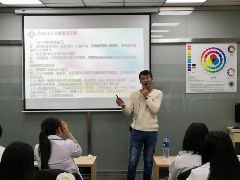 此次分享會(huì)上,梁慧清同學(xué)帶來(lái)了自己精心制作的主題課件——自我提升與管理,分享的內(nèi)容包括了知識(shí)的重要性、學(xué)習(xí)的重要性、學(xué)歷的重要性、自我管理的重要性等一系列相輔相成的知識(shí)點(diǎn)。為分享會(huì)做了精心準(zhǔn)備的梁慧清,還精挑細(xì)選了很多與主題相關(guān)的生動(dòng)案例,并用生動(dòng)、詼諧的語(yǔ)言與同學(xué)們分享了自己的所見(jiàn)、所聞、所想。高彩2班其他學(xué)員用仔細(xì)聆聽(tīng)、積極互動(dòng)、認(rèn)真筆記的方式,回應(yīng)梁慧清同學(xué)的努力,而王思瑤老師和前來(lái)觀(guān)摩分享會(huì)的國(guó)際化妝班講師李春杰老師,也在臺(tái)下認(rèn)真地旁聽(tīng),并對(duì)梁慧清同學(xué)做出的努力表示了肯定和贊賞。