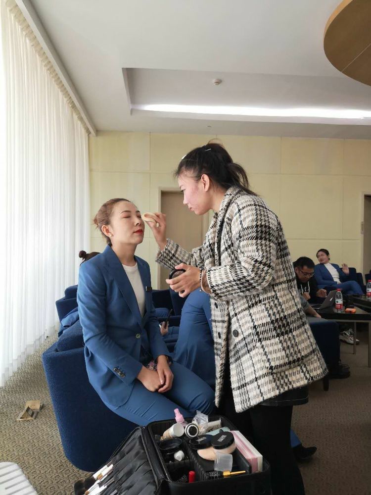 劉芯帆老師和她的私人訂制班,便是統(tǒng)麗學(xué)校社會(huì)實(shí)踐領(lǐng)域的骨干力量。10月27日,在劉老師的組織下,私人訂制班數(shù)名精英學(xué)員前往某地產(chǎn)公司,為其在“友誼劇場(chǎng)”舉辦的團(tuán)建以及優(yōu)秀員工拍攝形象照活動(dòng)提供助妝相關(guān)的美業(yè)技術(shù)支持和服務(wù)。