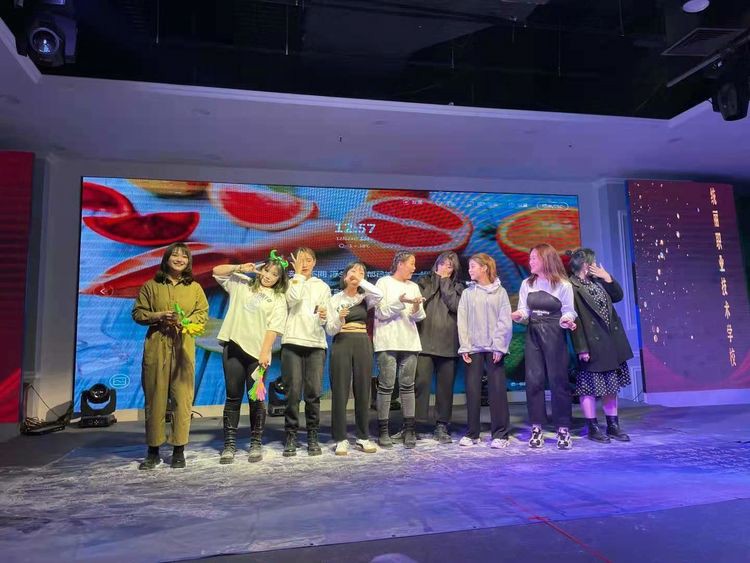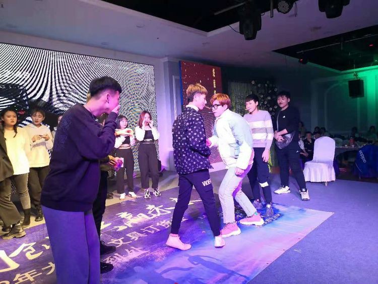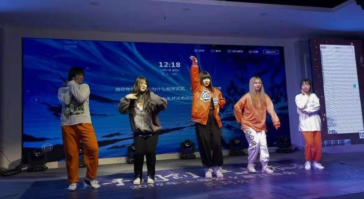 在頒獎(jiǎng)儀式喜慶的氛圍下,聯(lián)歡會(huì)的文藝匯演部分正式開始!國(guó)際化妝班五位小學(xué)員,首先以精彩絕倫的舞蹈串燒“佐客女團(tuán)”嗨翻全場(chǎng),美發(fā)燙染班帶來的“高仿真”獨(dú)唱曲目“好想愛這個(gè)世界啊”同樣迎來滿場(chǎng)喝彩。亞健康調(diào)理師班的舞蹈“可愛擺”、高彩2班的舞蹈“漫步人生”和“虛胖組合”、美發(fā)弟子班的吉他彈唱“老男孩”、金牌美容師班的創(chuàng)意舞蹈“黑白腿”、國(guó)際紋繡班的舞蹈“Blackpink”、美發(fā)剪發(fā)班的歌曲串燒.......精彩且令人眼花繚亂的歌舞演出,將現(xiàn)場(chǎng)的氣氛一次又一次地推向高潮。