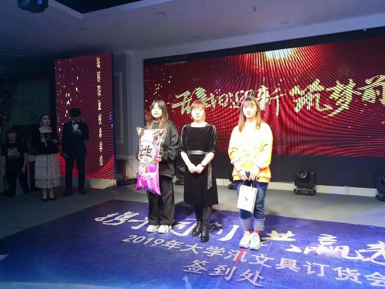 不久前,統(tǒng)麗學(xué)校承辦了“盛世新韻中國(guó)風(fēng)”主題百萬職工技能競(jìng)賽,各個(gè)專業(yè)參與角逐的作品給人留下了深刻的印象。所謂喜上加喜,借著舉辦聯(lián)歡會(huì)的契機(jī),兩位主持人宣布了在大賽中獲得“千人大會(huì)人氣獎(jiǎng)”的選手名單。獲獎(jiǎng)?wù)咧鹨坏桥_(tái)跟大家致意,郭曉芳校長(zhǎng)、姚娟副校長(zhǎng)、張洪嫚主任等校領(lǐng)導(dǎo)則親自為獲獎(jiǎng)?wù)哳C發(fā)了豐厚的獎(jiǎng)品,并與之合影留念。