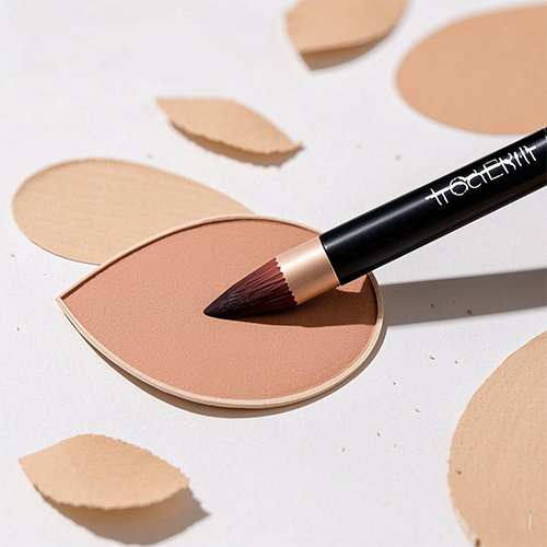 (3)選擇一把刷子或者海綿,先將淺色修容鋪開再拍開深色修容即可。