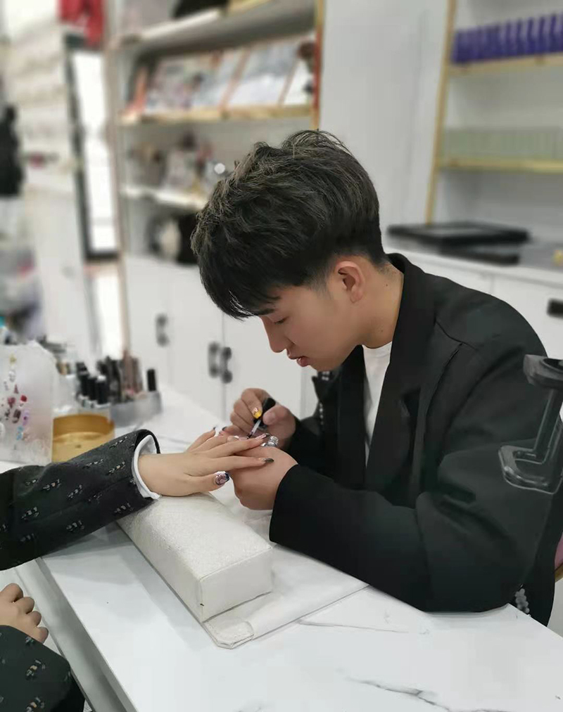 在很多人印象中,美甲師是一份女性職業(yè),晏來同樣面對過這一“性別歧視”?!坝龅竭@種困難是在所難免的,畢竟美甲從業(yè)者以女性為主。我開始學習美甲時,家人也對我這個學習方向產生過質疑。但通過不斷地學習,以及丁斯琦老師的悉心開導,我逐漸意識到,男性美甲師也有自己獨到的優(yōu)勢,比如可以從異性的審美角度出發(fā),為顧客提出合理的建議等。只要能克服開始階段的所謂心理尷尬期,男性照樣可以成為優(yōu)秀的美甲師?!?