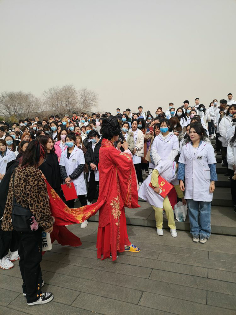 上午十時(shí)許,英姿勃發(fā)的統(tǒng)麗學(xué)員以班級(jí)為單位,排著整齊的隊(duì)列,邁著整齊的步伐,迎著陽春三月和暖的陽光,在沈陽故宮大廣場上集合。數(shù)百名學(xué)員以系為單位站列,以齊聲高唱雄壯的國歌的方式,拉開了此次春季開學(xué)典禮的序幕。在主持人穆彭老師以及李春杰老師的引領(lǐng)下,沈陽統(tǒng)麗美容、美發(fā)、化妝、美甲、攝影系的學(xué)子們先后用整齊劃一、鏗鏘有力的口號(hào),宣揚(yáng)著深藏于心的向往、追求和希冀,以及向青春夢想和無限未來問好的蓬勃朝氣!