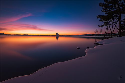 常見的日出作品,是以太陽為單一主體來表現(xiàn)。但日出時刻的風(fēng)光創(chuàng)作,要以豐富的景物來突出光影明暗變化。