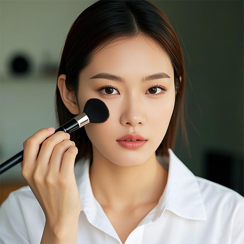 4、上粉底的時(shí)候,下巴位置薄涂,上完底妝后,在下巴位置擦點(diǎn)修容粉。